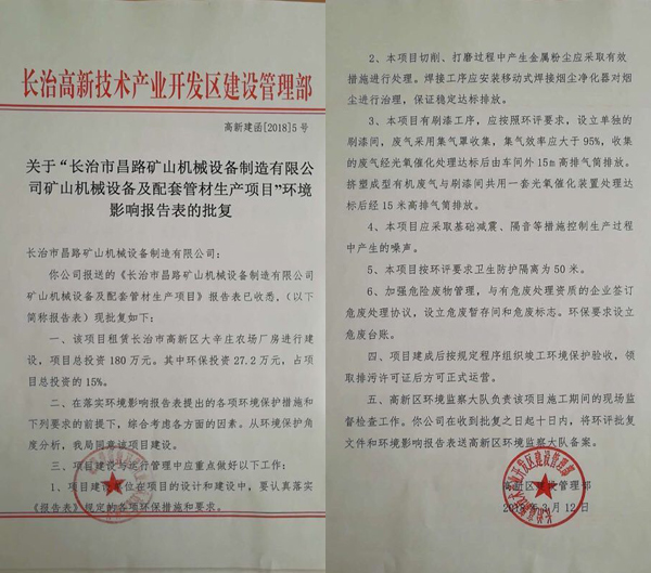 榮獲長治高新區(qū)環(huán)境影響報(bào)告表的批復(fù)