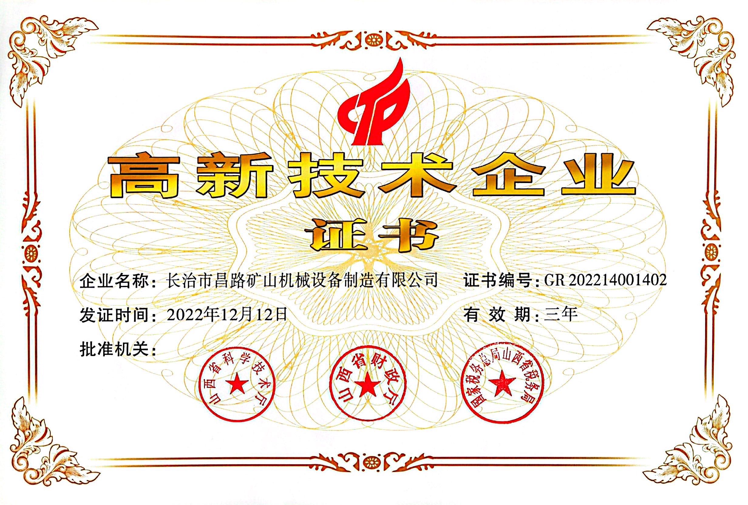 高新技術(shù)企業(yè)證書