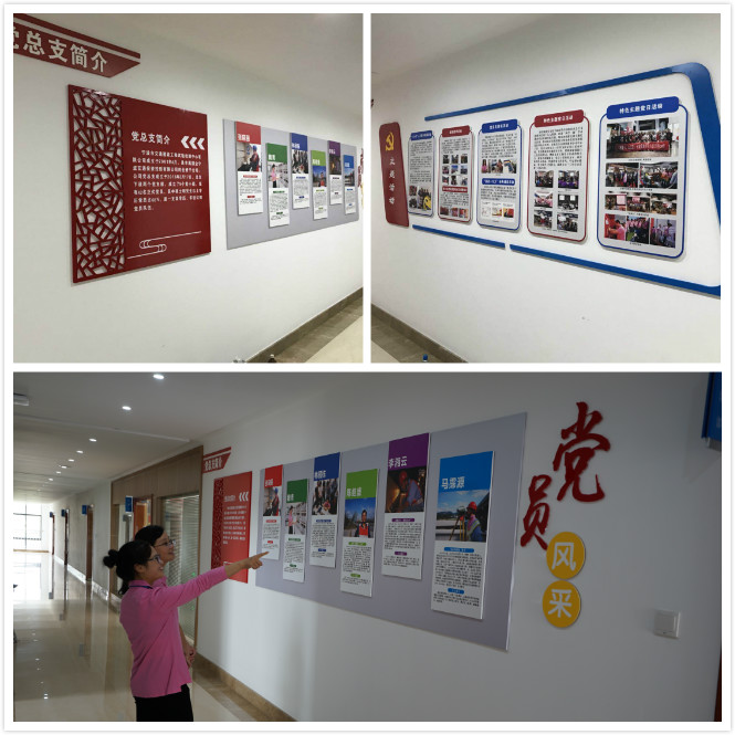 將走廊的“空白墻”設(shè)計成企業(yè)黨建文化長廊。整個長廊以“建陣地、強(qiáng)組織、展分采、聚人心”為主線,以鮮艷的紅色為主色調(diào),以黨和國家標(biāo)志性圖案為背景,以圖文并茂、喜聞樂見的表現(xiàn)形式對十九大精神、兩學(xué)一做、黨員風(fēng)采、主題活動和廉潔宣傳等五方面內(nèi)容進(jìn)行了上墻,其中“黨員風(fēng)采”上的六名年度優(yōu)秀黨員的先進(jìn)事跡,成為了大家駐足觀看的焦點,較好的促成了內(nèi)部形成“人人爭當(dāng)先進(jìn),處處彰顯黨性”的良好氛圍。