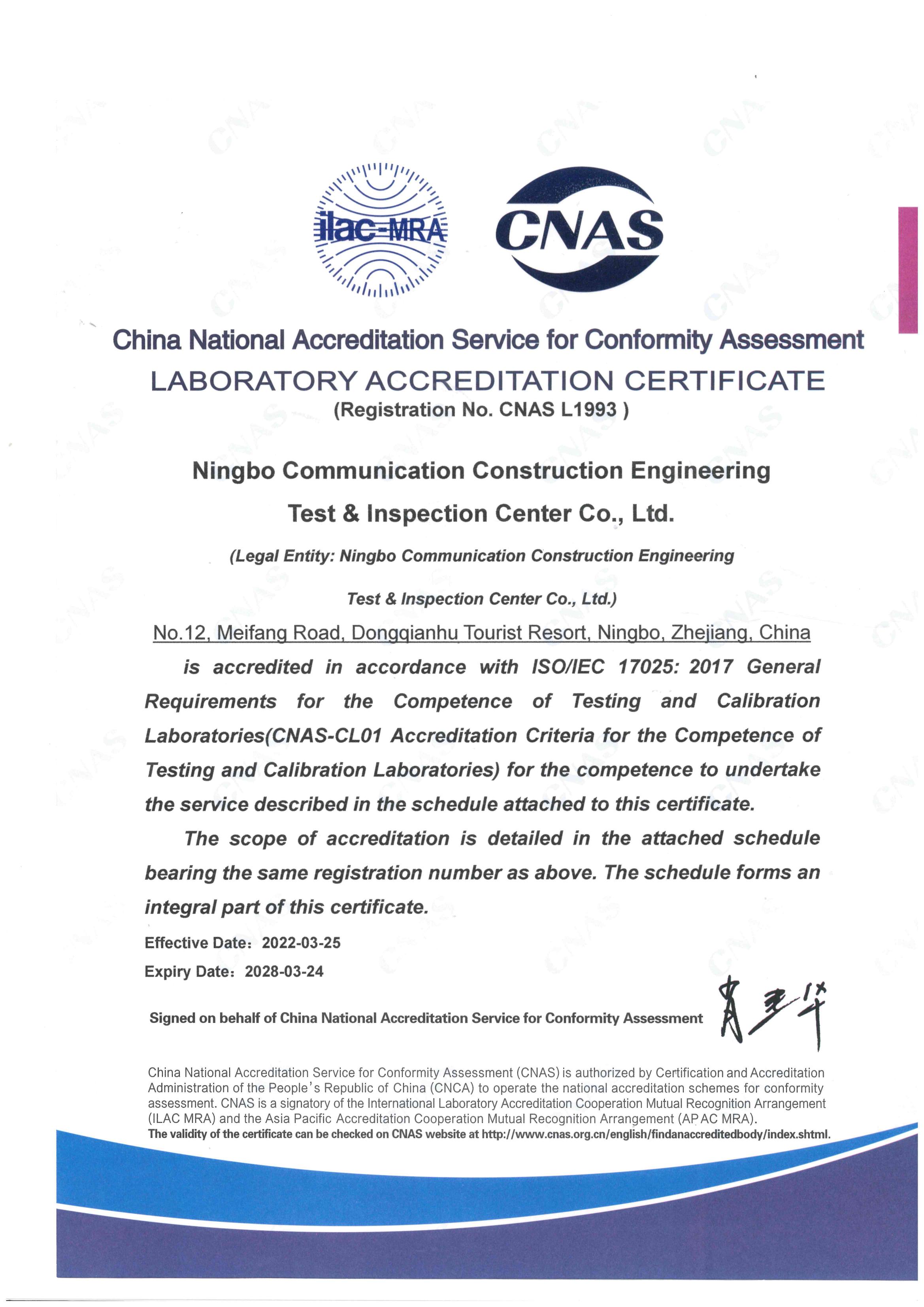 國(guó)家級(jí)實(shí)驗(yàn)室認(rèn)可證書(shū)