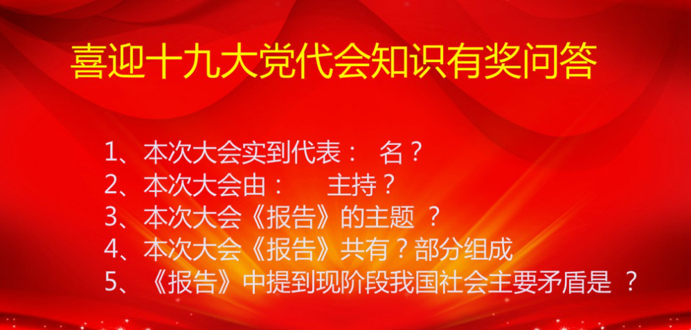 黨的十九大是我國全面建成小康社會決勝階段、中國特色社會主義發(fā)展關鍵時期召開的一次十分重要的大會。為了提高公司黨員學習積極性擴大參與度共同學習領會十九大會議精神,公司黨總支積極組織十九大會議期間每日知識有獎問答活動。
